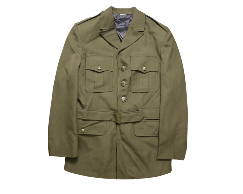 The US Army Female Heritage Green AGSU Dress Coat is a formal service uniform jacket designed for ceremonial and official duty wear. It provides a professional appearance while conforming to Army dress code standards.