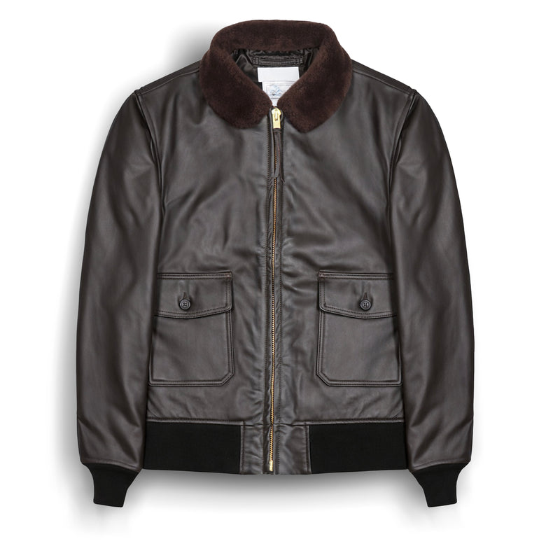 The US Military Type G1 flyer’s jacket is an intermediate weight leather flight jacket intended for aviation duty wear. It provides wind protection and insulation in cool weather flight environments.